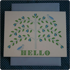 | | how often do you just want to write to someone for no reason other than to say “hello”? how perfect is this colorful dutch inspired tree with 2 sweet birds and a simple hello?